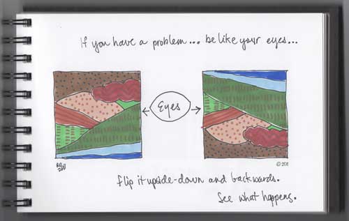 Take that problem and flip it upside down (did it’s skirt fall down and you see its underpants?), then turn it backwards (it should be a little dizzy right now), and see if it looks or feels different. I tried to do this with a drawing – it’s not a perfect flip-flop of the image, but I think it gets the point across. The image on the right makes me think of something totally different then the image of the left. Cool, right?!?!