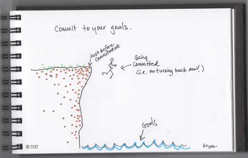I think about standing on the edge of a cliff looking out over the water. There is the edge where you are still on solid ground and then there is the moment after you have jumped off the edge and you are in the air. Your stomach is somewhere up in your throat and you are free-falling and you might even be screaming something like “holy moly what did I just do I wanna go back right now aieeeeeee.” That’s the moment of commitment.