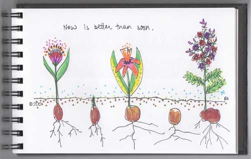***It is springtime and I have flowers and bulbs on the brain. There are so many ways to illustrate this thought, but I figured this is seasonal. “Now” is about doing it today – not procrastinating or getting bogged down in planning or making excuses or taking your time. It is not the same as “soon” – which means sometime in the future. “Now” means action and usually means taking a chance.