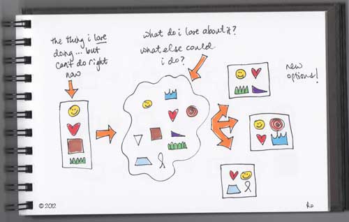 It actually worked! I found three new options (the boxes on the right) that keep the essential stuff together (in this case the heart and the smiley face) and add something different. It makes me less grumpy, less sedentary, and much more happy! I also found that I really enjoy two of the activities and I never would have tried them otherwise. Yay!