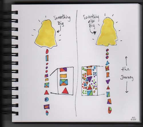 On one side you start with a goal. You KNOW what you want to accomplish. You know where you are headed. With a laser-like sense of focus you map out the steps you need to take to get to the goal. The end result is already known. The challenge lies in both figuring out the steps you need to take to get there and then in taking each step. It is a much more linear path.