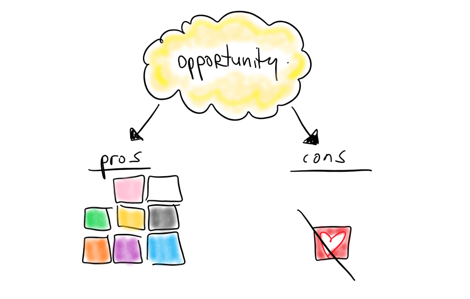 What if the opportunity makes your stomach hurt? What if the opportunity is exactly the opposite of what your heart wants you to do? What if the opportunity is something you have never wanted to do? What if there are 8 things in the pro-column and only 1 thing in the con-column?