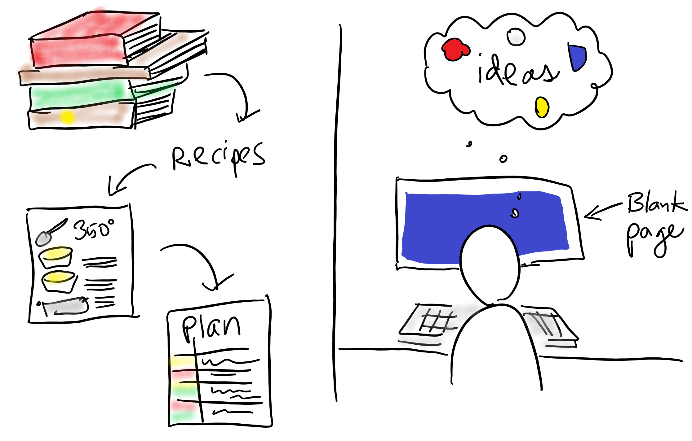 If I were my own best friend I would tell myself to commit to the practice of planning to be creative, similar to planning a menu. Commit the time every day to write. And then write. The content may not be planned, but the act of writing will be. I will feel more prepared. And though I know it will not be easy every day, I know I will be slowly building my practice. Day by day. Do the work. Plan ahead.