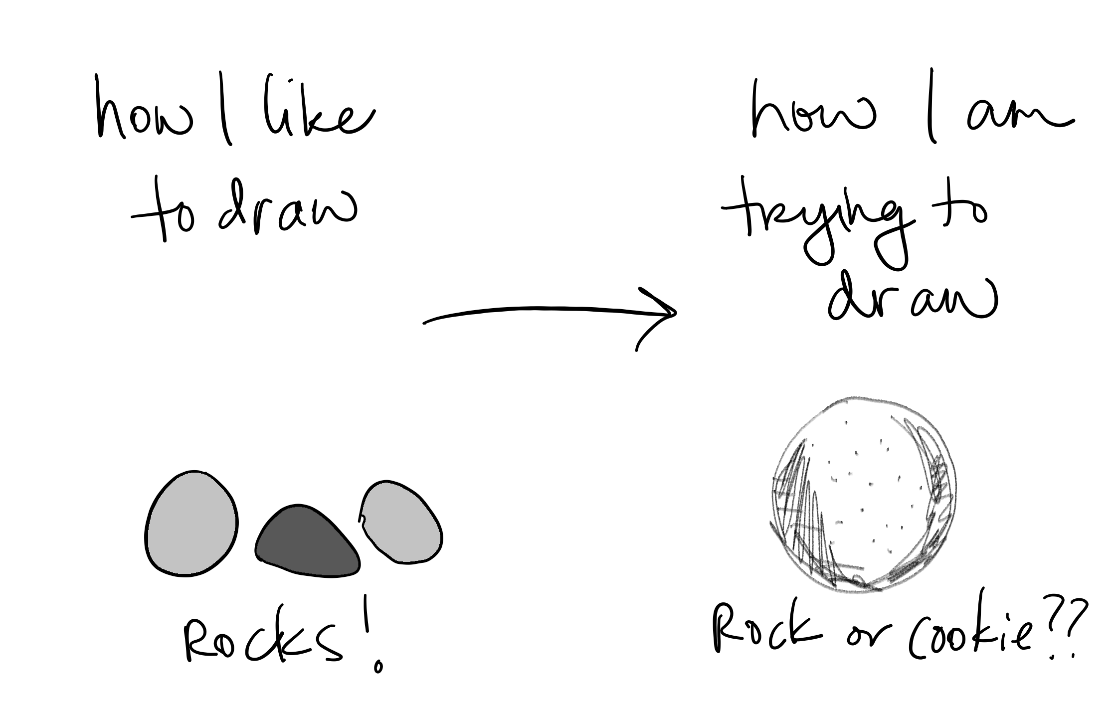- Rocks are my nemesis. I thought drawing a rock would be easy. It’s just a rock for goodness sake. Ha. I am currently obsessed with drawing rocks so they actually look like rocks. Not like grey pancakes or miscolored lumps or a walrus or anything else that is not a rock.