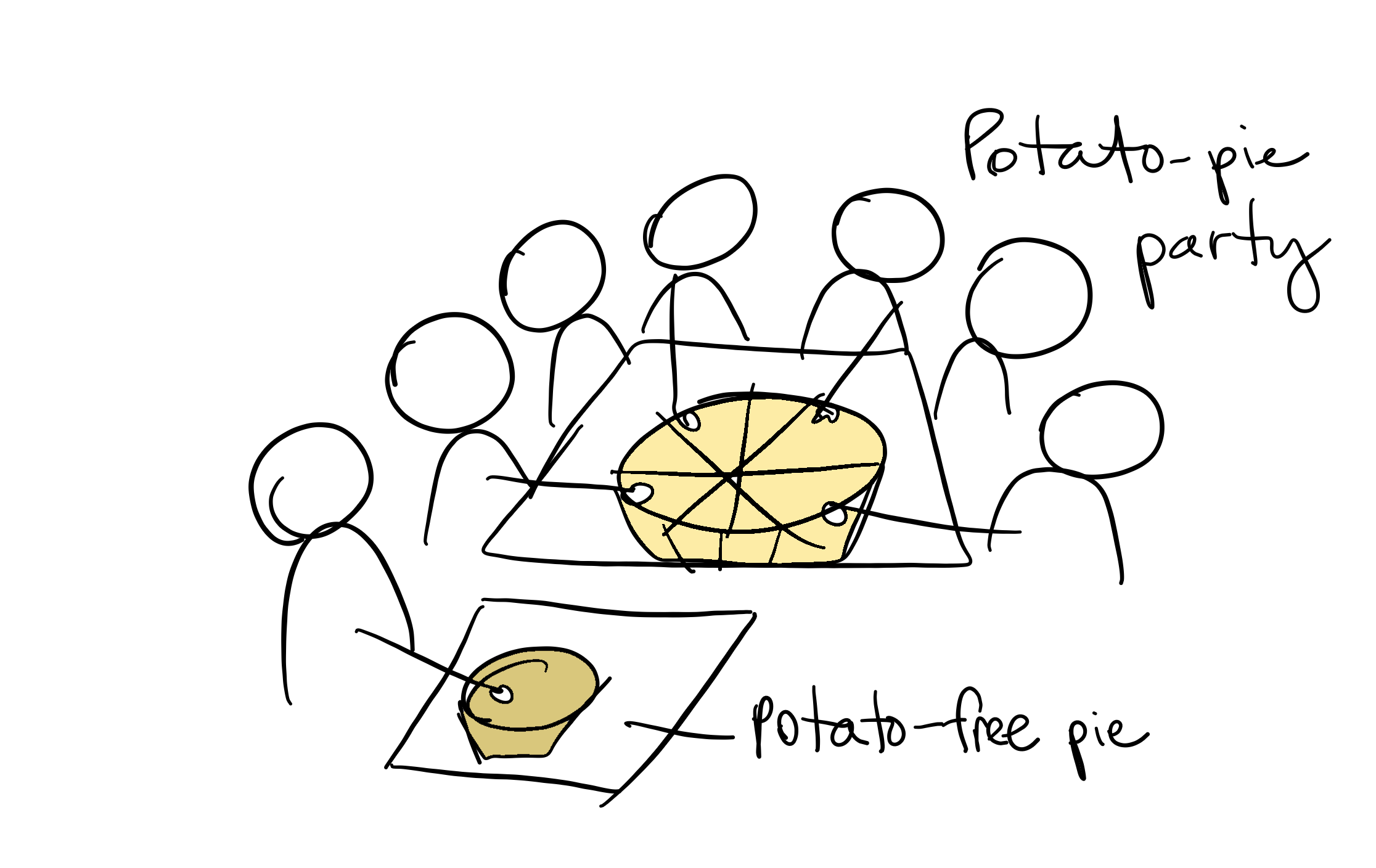 Now, imagine you are allergic to potatoes. But you love potato pie. You want to eat potato pie. You want to eat out. To eat what your friends. Your team. You want to go to the birthday party or the post-season bash or the potluck and eat what everyone else is eating. Makes sense, right?