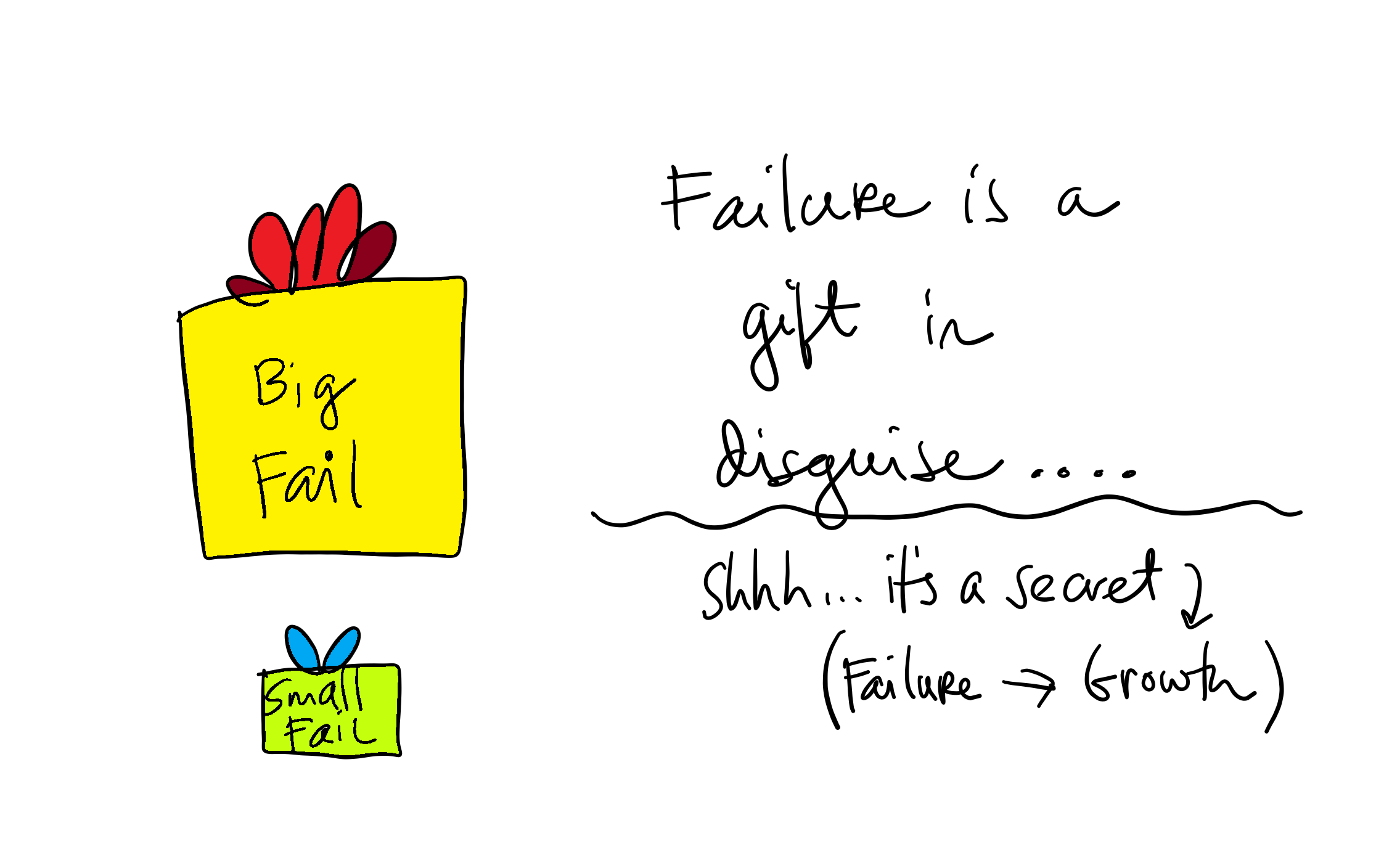So, if I were my own best friend, I would remind myself it’s okay to fail huge. In fact when I fail huge what it really means is I am learning a huge amount in a very short period of time. And that learning, that discomfort, that uncertainty, it all leads to growth. I can take the failure and turn it into what I do next, except this time I will do it with more knowledge, more confidence, and a better chance of succeeding.